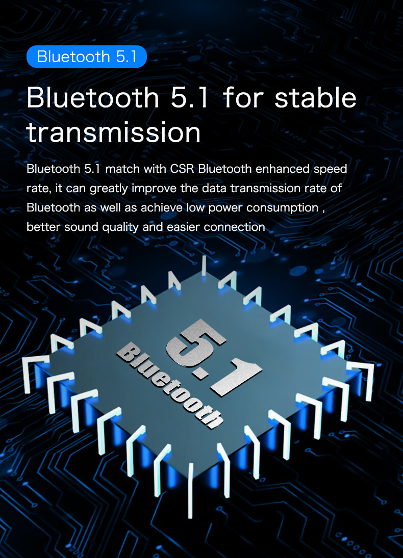 Bluetooth5.1 match with CSR Bluetooth enhanced speed rate, it can greatly improve the data transmission rate of Bluetooth as well as achieve low power consumption,better sound quality and easier connection.