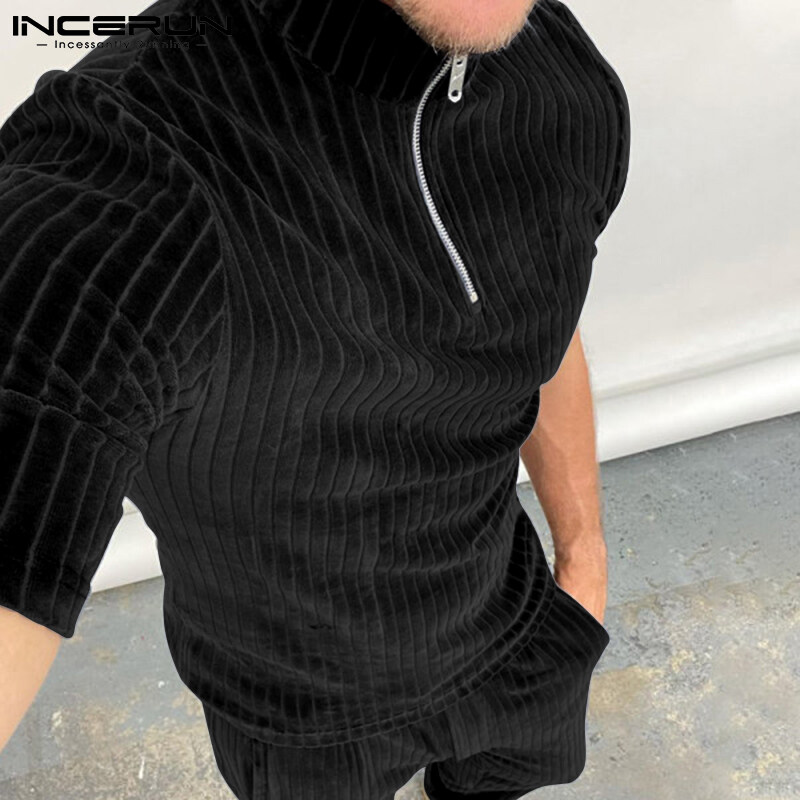 Beehoo INCERUN男式短袖拉链套装短裤适合睡衣内衣(西式)