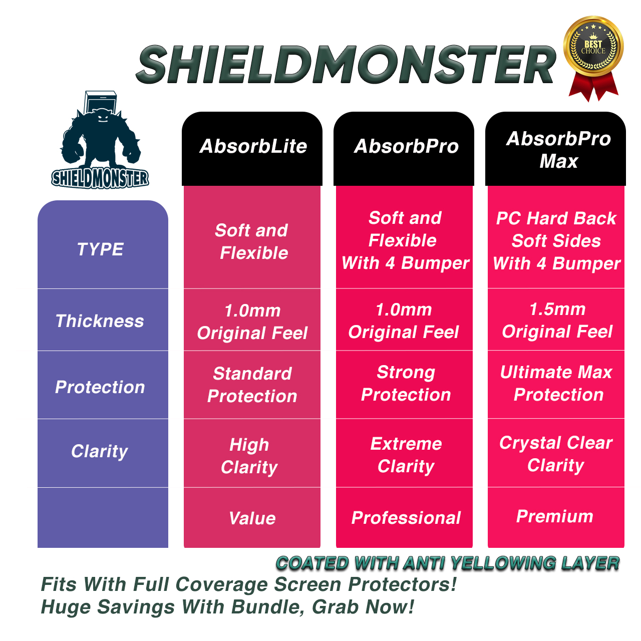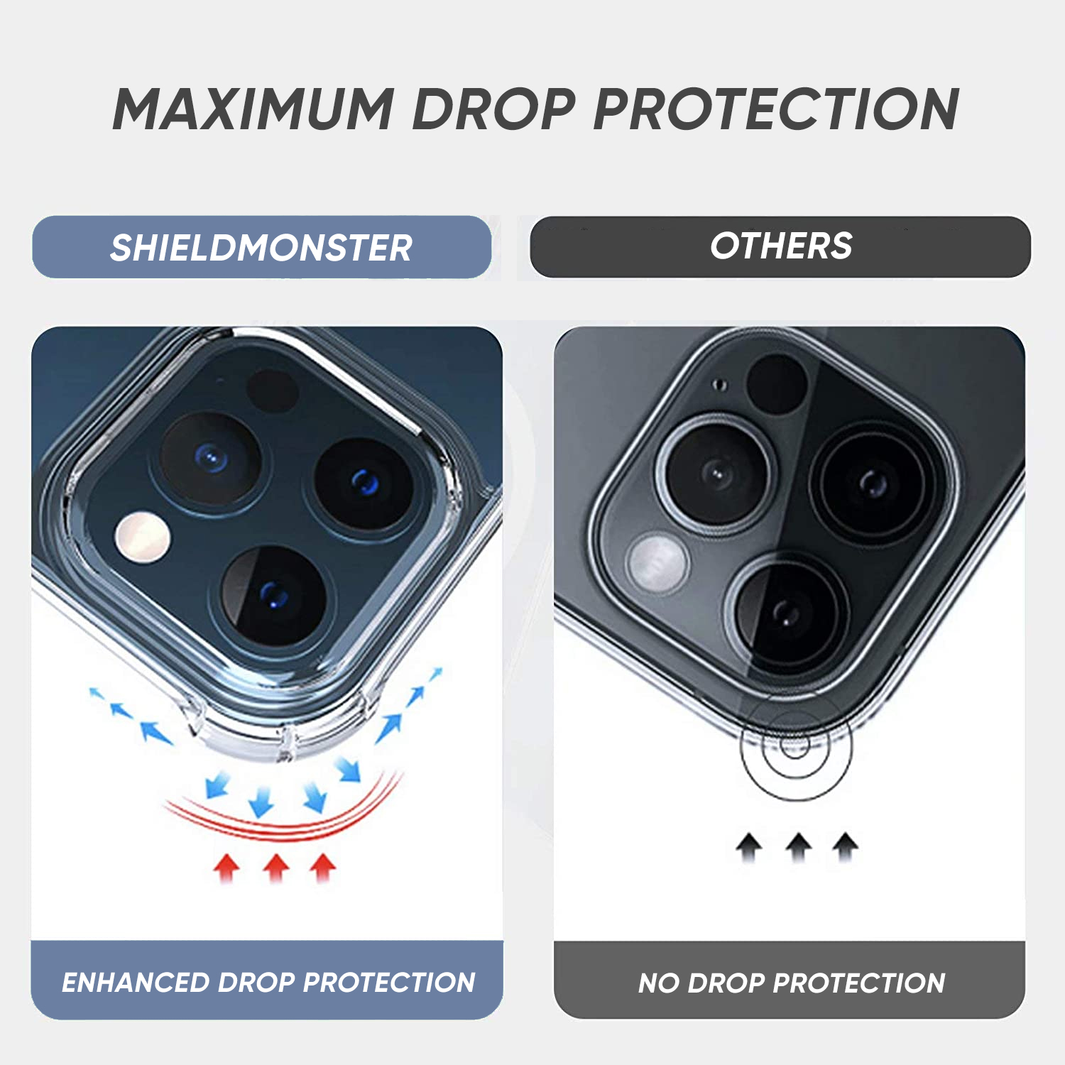 Shieldmonster iPhone手机壳14 Pro Max/14 Pro/14 Max/13 Pro Max/12/11/XS/X/8外壳透明硬软透明TPU盖