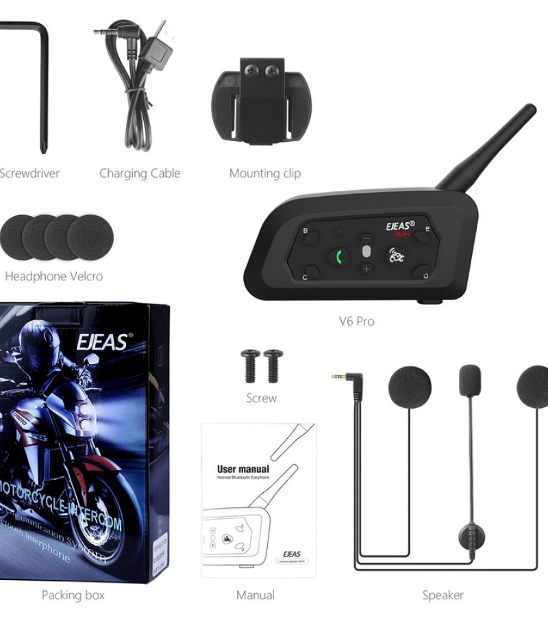 Ejeas V6 Pro蓝牙摩托车头盔对讲耳机,蓝牙5.1,850mAh,CVC降噪1件套