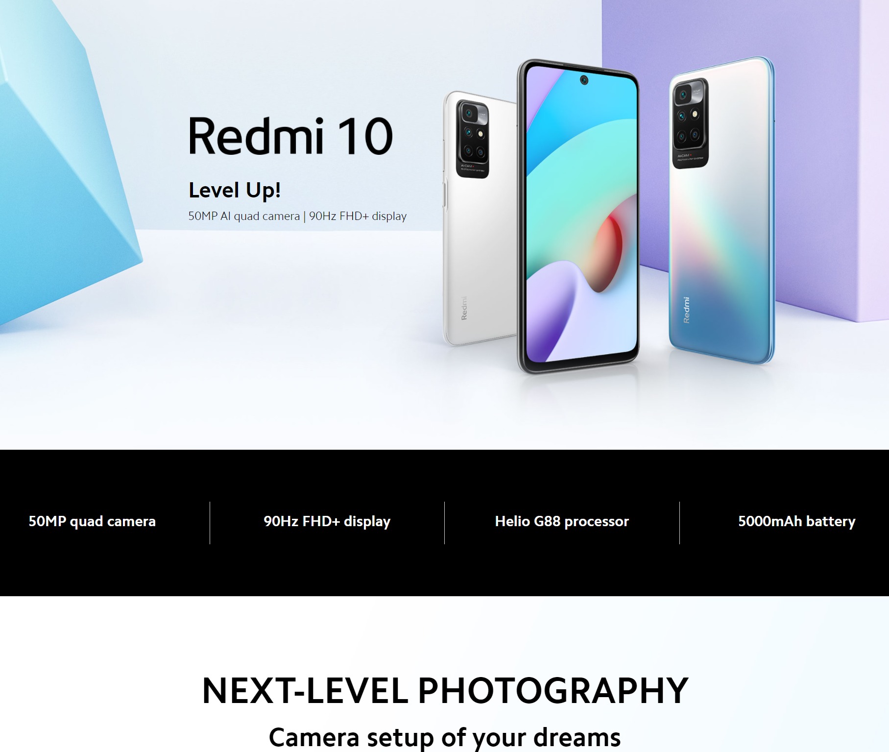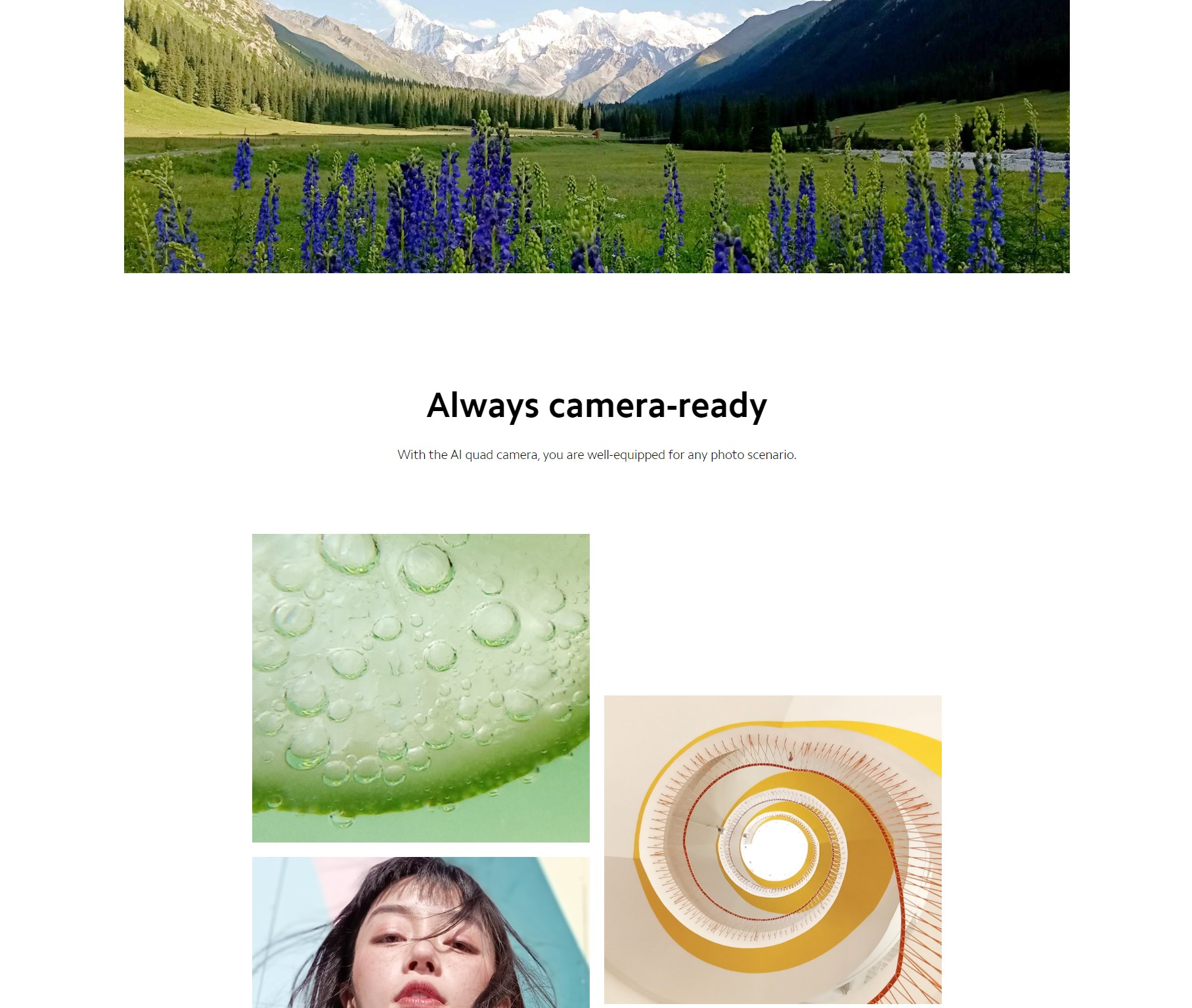 • 50MP AI quad rear camera · 50MP main camera f/1.8 · 8MP ultra-wide angle camera FOV 120° f/2.2 · 2MP macro camera f/2.4 · 2MP depth sensor f/2.4