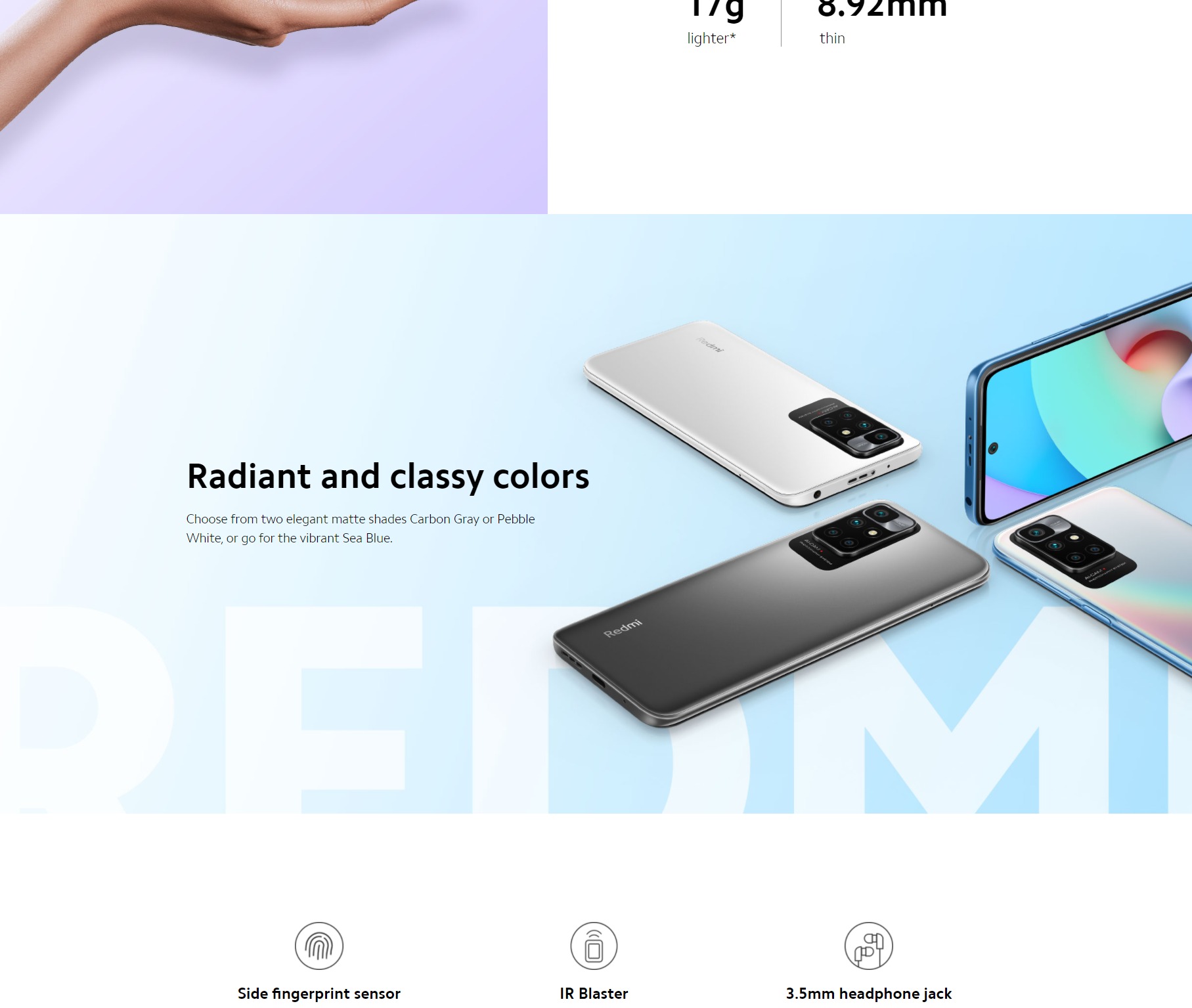 • Color: Carbon Gray, Pebble White, Sea Blue
