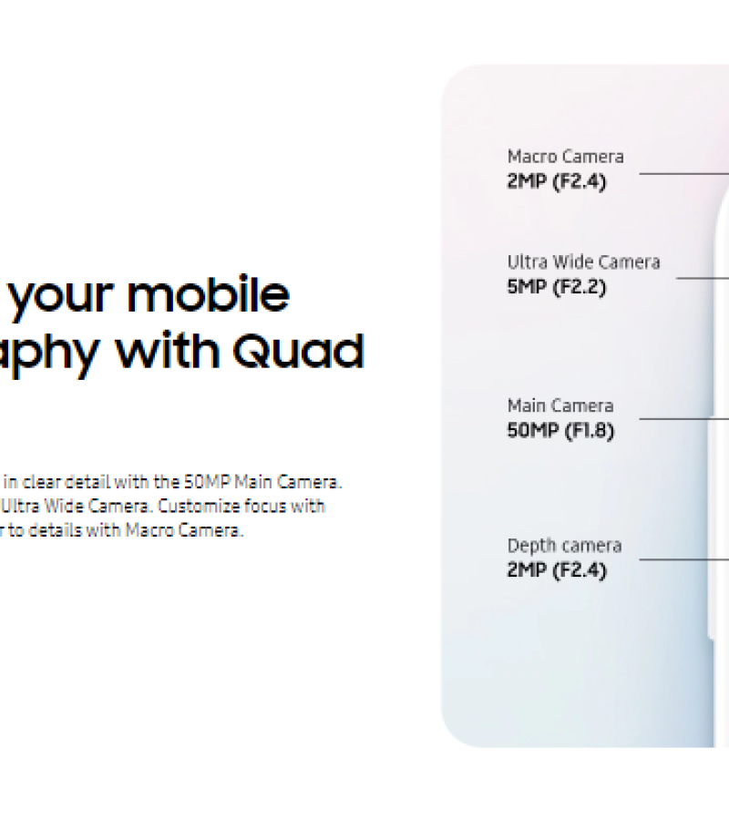 - eMMC 5.1MAIN CAMERAQuad50 MP, f/1.8, (wide), PDAF