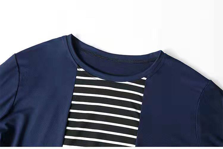 100KG胖女可穿2022新款韩式条纹长袖T恤女式短袖加大码盖腹圆领时尚T恤连衣裙优雅衬衫女式T恤