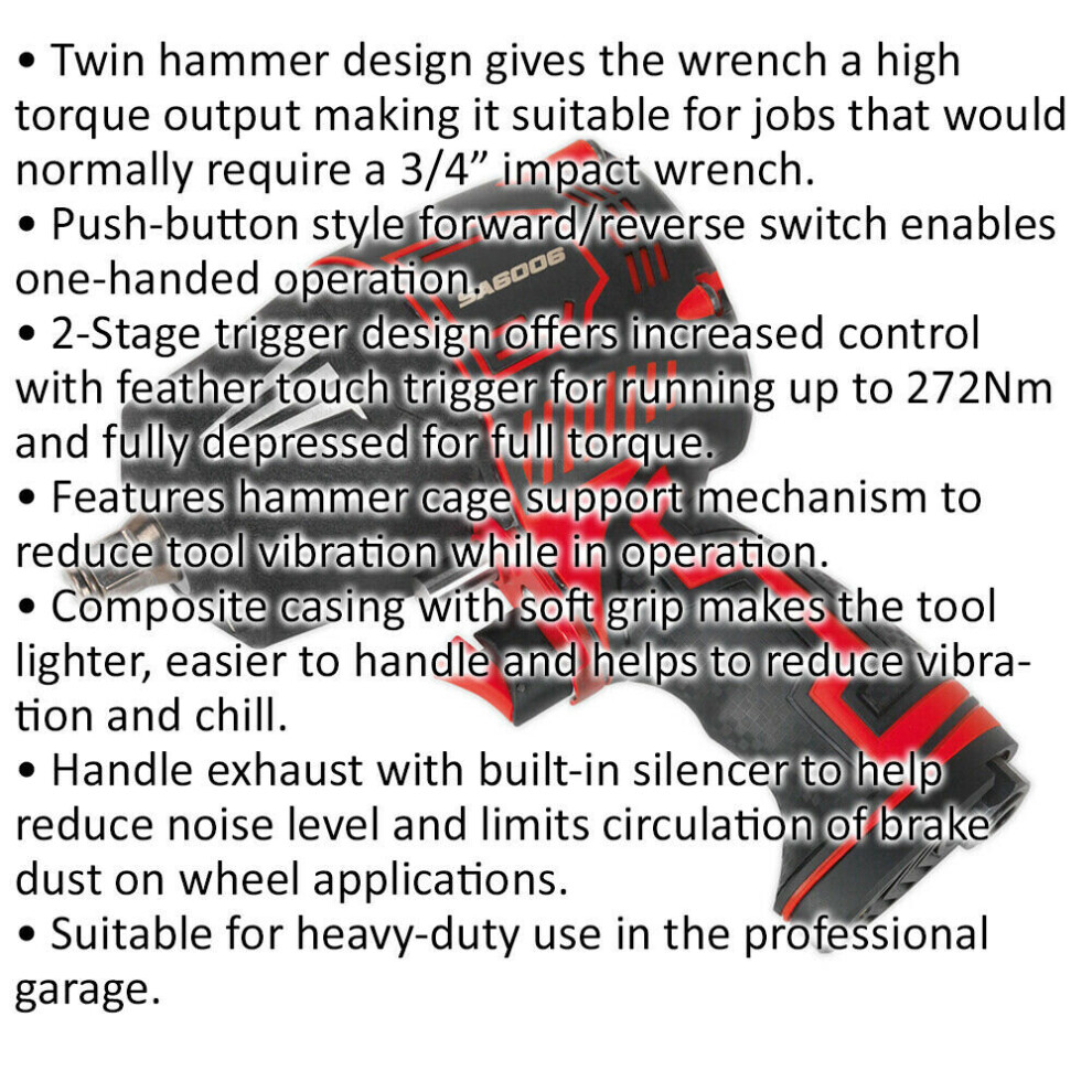 Heavy Duty Composite Air Impact Wrench - 1/2 Inch Sq Drive - Twin Hammer Description