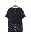 加大码白色红色女式花朵刺绣衬衫短袖夏季衬衫复古上衣